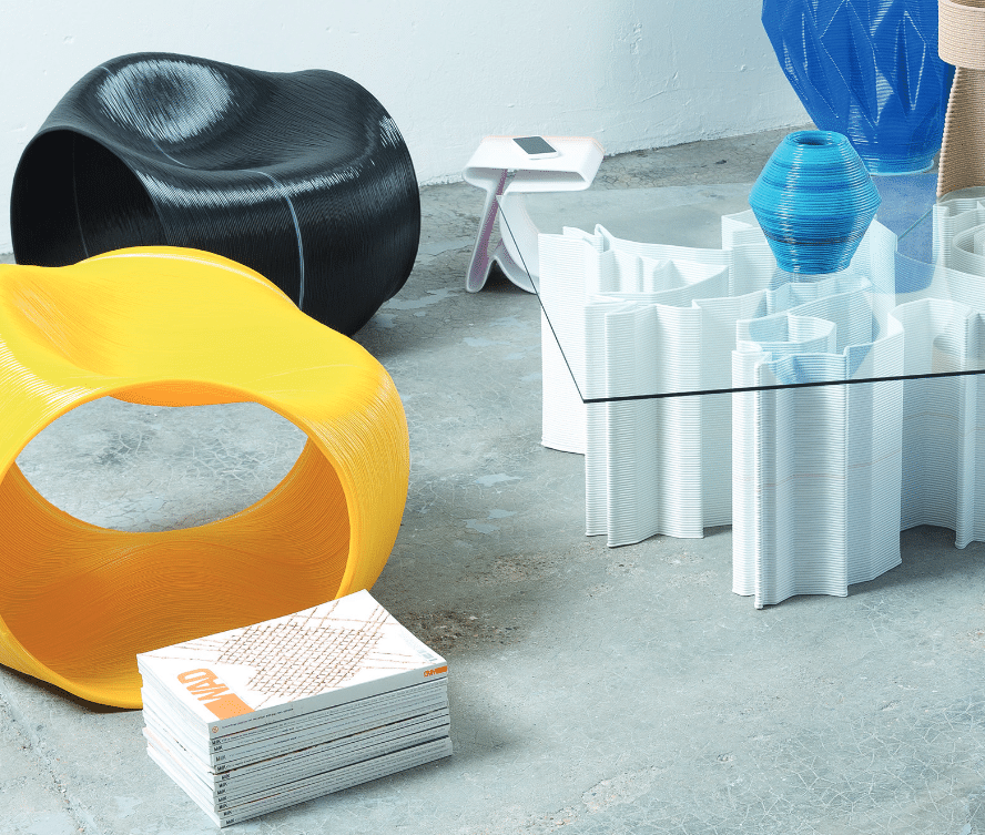 Start with James Novak’s wooden 3-D printed smartphone amplifier, Ferdinand Jahnke’s printed crate and Odette Coutant’s Tree Napkin Ring. Wood has always been exemplary for product and furniture design. The Asit chair by Drawn expresses wood fibers with a twist thanks to 3-D printing.
