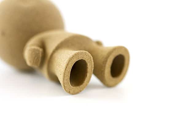 Beyond manipulating form, interlocking parts of product design can be done with 3-D printed wood objects. Lucas Alousis created his Teeny Tiny Treasure Chest that portrays a fully-functional box that opens and closes, all 3-D printed. Designers can now play with hollowing out the objects when using wood as well. Tommy Rombauts presents a little bonhomme called Tomy Tones, a prime example.