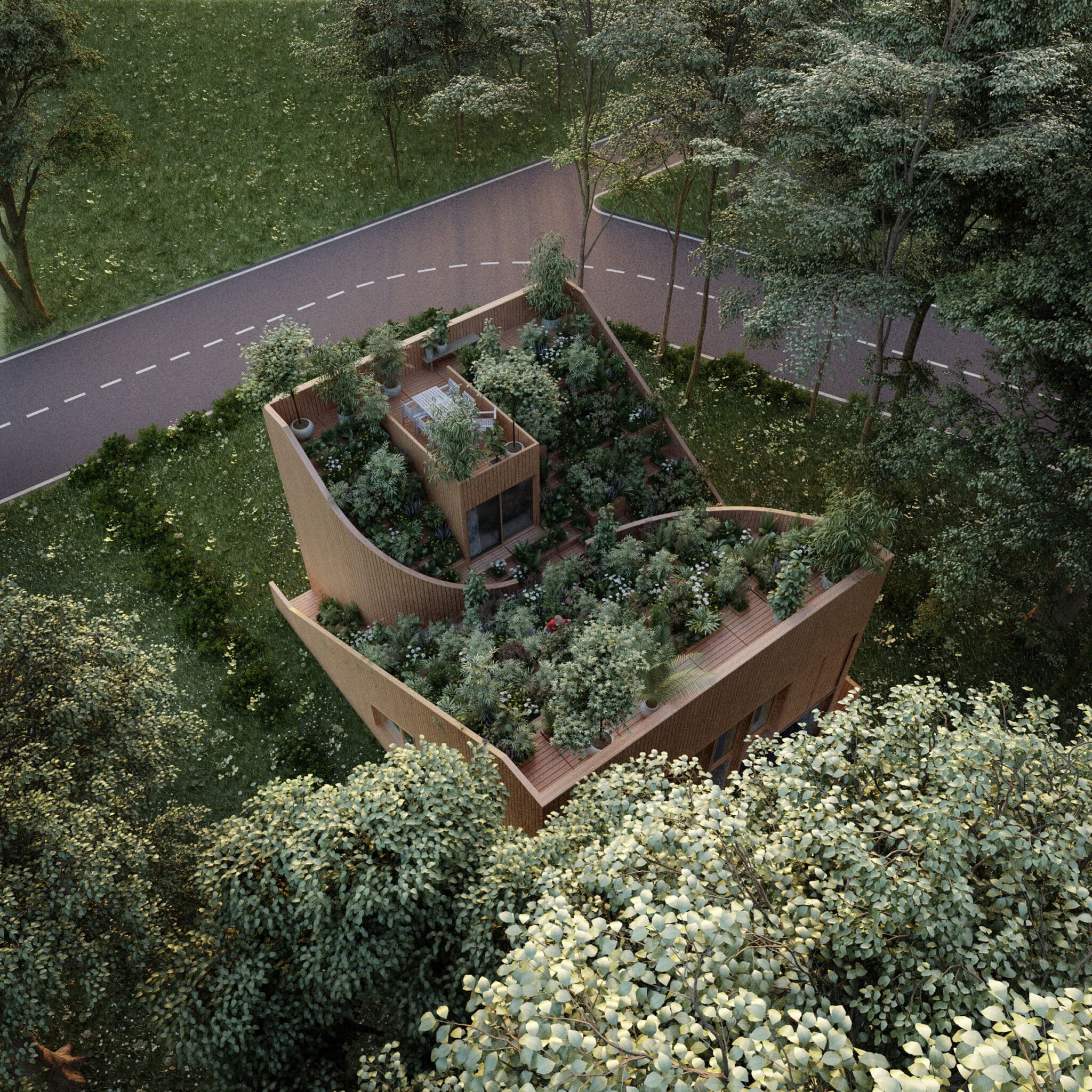 A variety of terraces will make up the roof, where many planters will house vegetation. The sloping roof accompanies rainwater to a tank where it’s stored and later reused for watering plants. The architects have also incorporated greenhouses for winter.