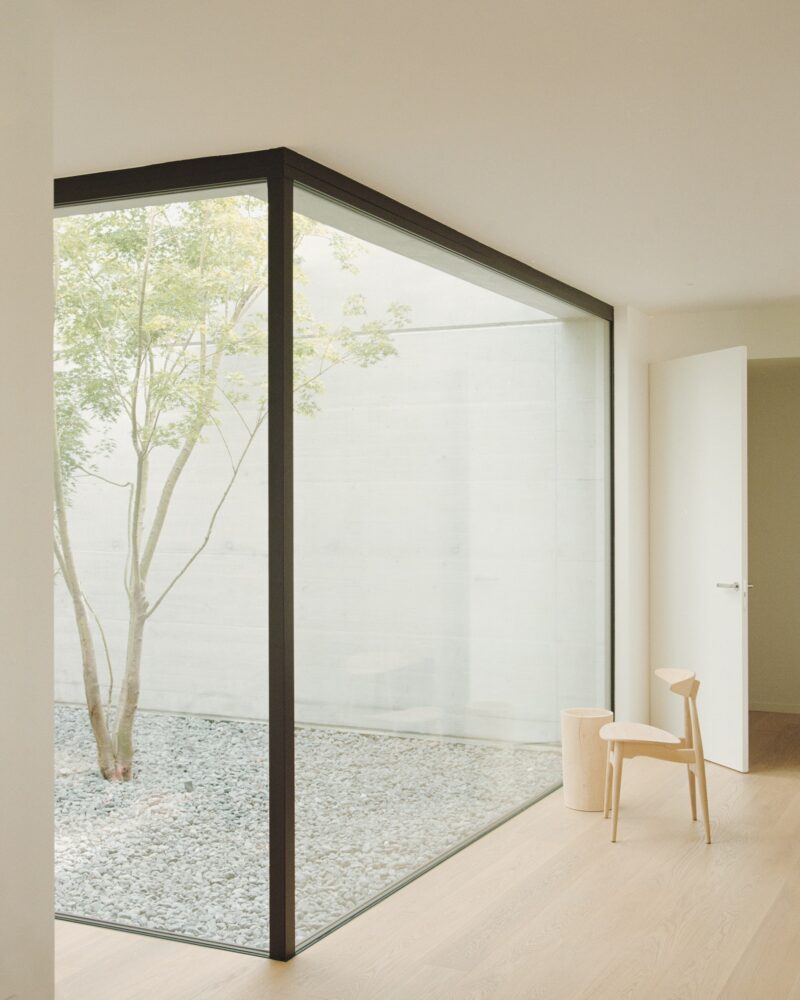 Although contemporary Italian architecture is increasingly multi-faceted and shaped by global trends and forces, the influence from its past remains strong – and not only when it comes to the more obvious, glorious past. The Tuscan style, for example, originates from the typical, medieval constructions of the region, when most buildings were horizontal, had walls made of irregular stones, and only one or two floors. Thick walls of rustic stone or terracotta with wooden doors and windows still exist in Tuscany today – and are a symbol of a sedate life in a rustic yet comfortable environment. A particularly modern interpretation of this style can be found in two projects by Didonè Comacchio Architects: House MD and House NF, both located at Bassano del Grappa, in the province of Vincenza. Completed in 2023, the MD House is partially embedded in the ground to make the most of the views of the natural landscape and take advantage of the different levels of the garden. The House NF, on the other hand, was completed in 2022. While it is made of exposed concrete rather than stones, its wooden frameworks and one of its two courtyards extending towards the garden create a peaceful, rural atmosphere.