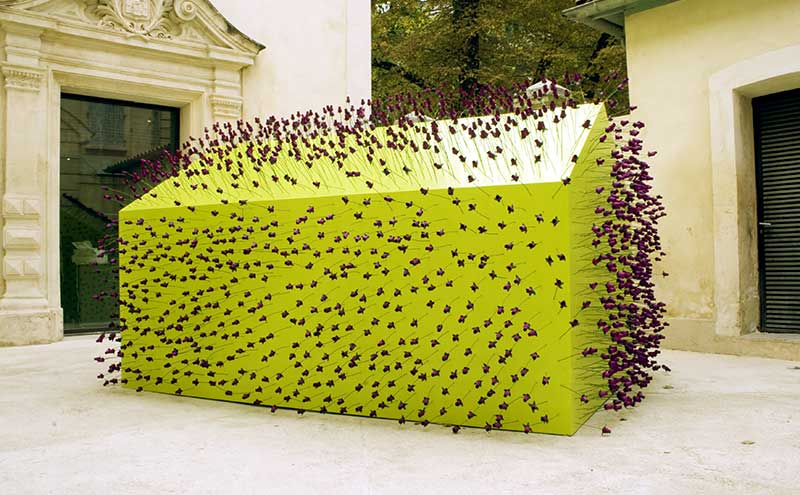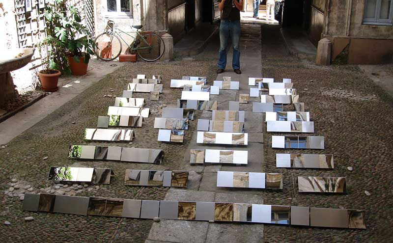 Momento by Italian Nicola Lorusso and Austrian Michele Realis Luc showed the theme through the need for reflection. They created a 3-D object made of courtyard experiments from the past nine editions, involving strings, cubes, spheres, stools, cones, monitors, panels, balls and frameworks. Other installations seemed less linked to the theme itself, but were appealing. The Cloudscape formed an architectural piece made of thin metal sheets, offering subtle movements and resonating wind and temperature changes.