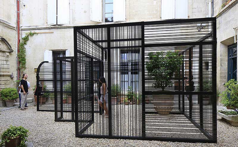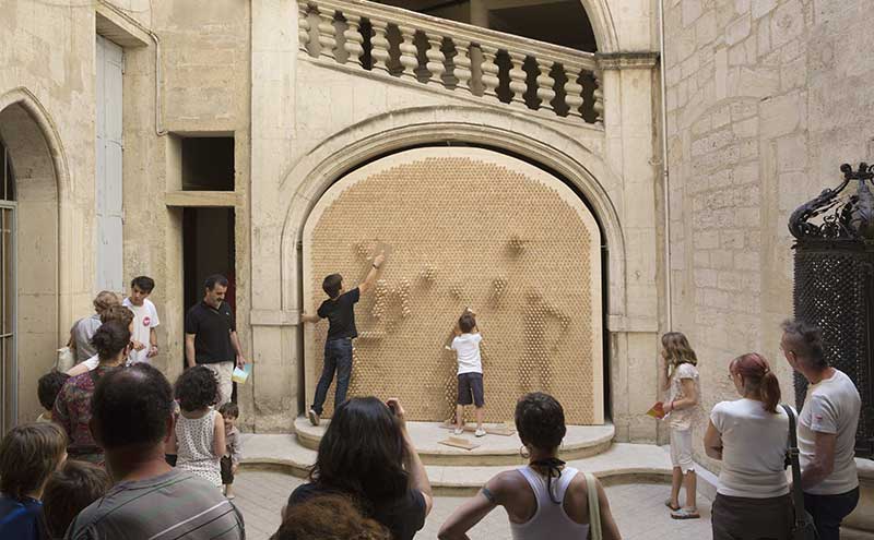 Designated sites are often historical hotel courtyards located indoors, and they’re often top-free. Participants had the pleasure of adding to 10 sites in Montpellier and eight in La Grande Motte. Every year the curators, along with the jury, invite a young thriving team of architects to design the Pavilion, a welcome center for visitors. NAS Architecture, attributed the Prix du Grand Public in 2014 for its FAV installation in La Grande Motte, was in charge of this year’s Pavilion.