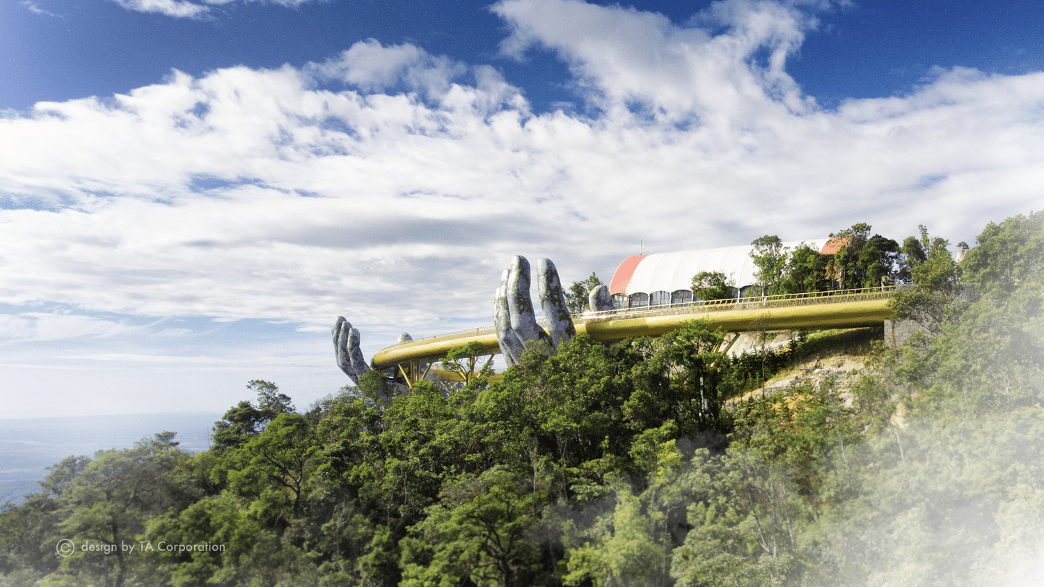 “Our team worked on the core concept, to create a Land of Gods, so the giant hands of a god suddenly pull the golden bridge out of the mountain,” says Vu Viet Anh – the design director for the firm that created the 10-finger wonder, TA Landscape Architecture, which is based in Saigon (Ho Chi Minh City).