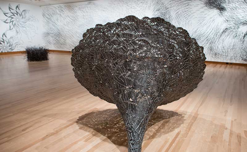 Bisbee has been welding steel together for 30 years. He stumbled on the brilliant idea of creating sculptures out of nails in a small accident when he knocked over a pail loaded with them and saw that they did not disperse after they were out, retaining their bucket form, as they were all rusted tight together.