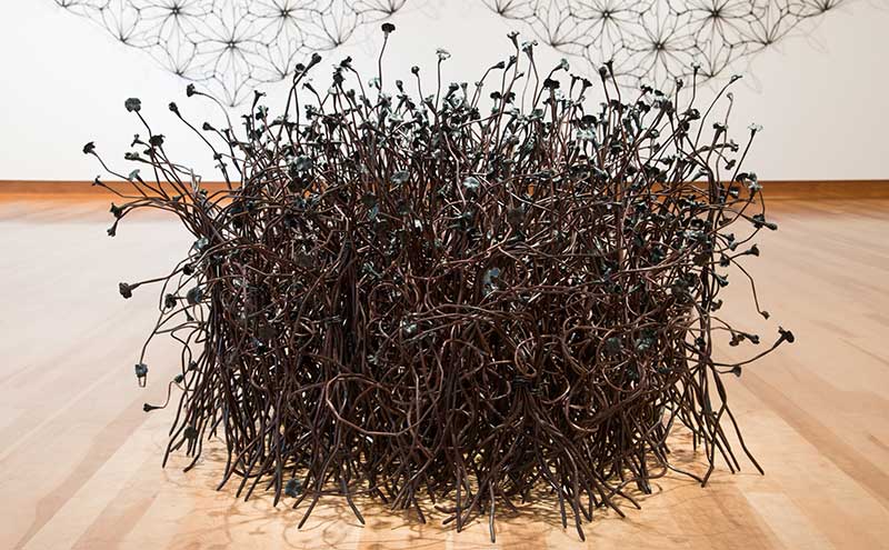 In the case of John Bisbee’s sculptures, the sensations coming from his steel flowers are different from the ones that you touch and smell during springtime. Bound together, the 12-inch nails invoke a feeling of irony and beauty.