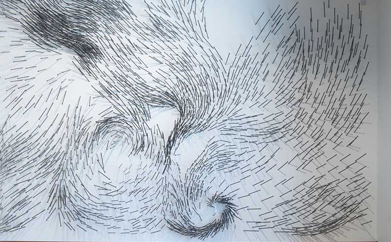His passion for using nails in his pieces continues to this day. As we asked the sculptor if he would be using other materials other than nails, Bisbee shares: