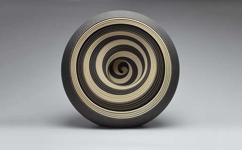 And from ceramic cylinders that Chambers has created for his exhibition in Puls Ceramics Gallery, there is definitely intrigue in the never-ending swirls of each and every piece.