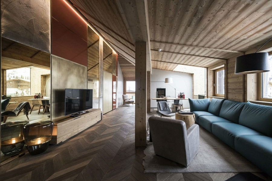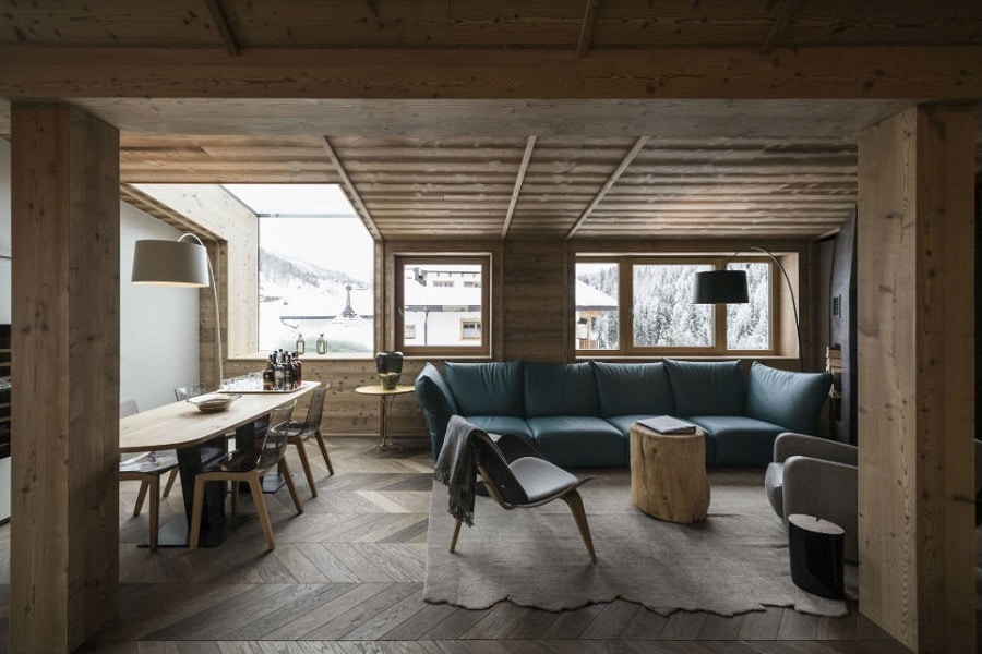 Just beyond Milan in the Italian Dolomite Mountains, tucked away in the village of San Cassiano in Alta Badia, is the new Penthouse by the architectural studio Vudafieri-Saverino Partners. The 160 m² penthouse is situated on the 4th floor of the five-star Rosa Alpina Hotel & Spa.