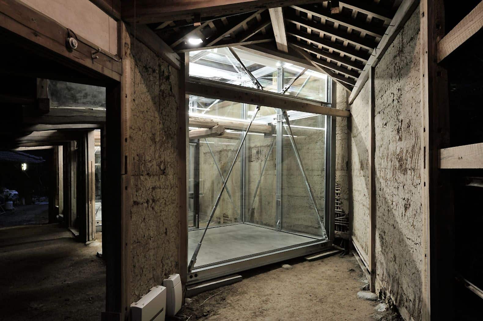 However, unlike the Cotswolds barn, this Japanese cowshed evoked important questions. “The cowshed could collapse in a major earthquake,” Suma says. “So we built a steel frame inside, detached from the cowshed, and clad it with glass so those inside could enjoy its ‘as-is’ beauty.”