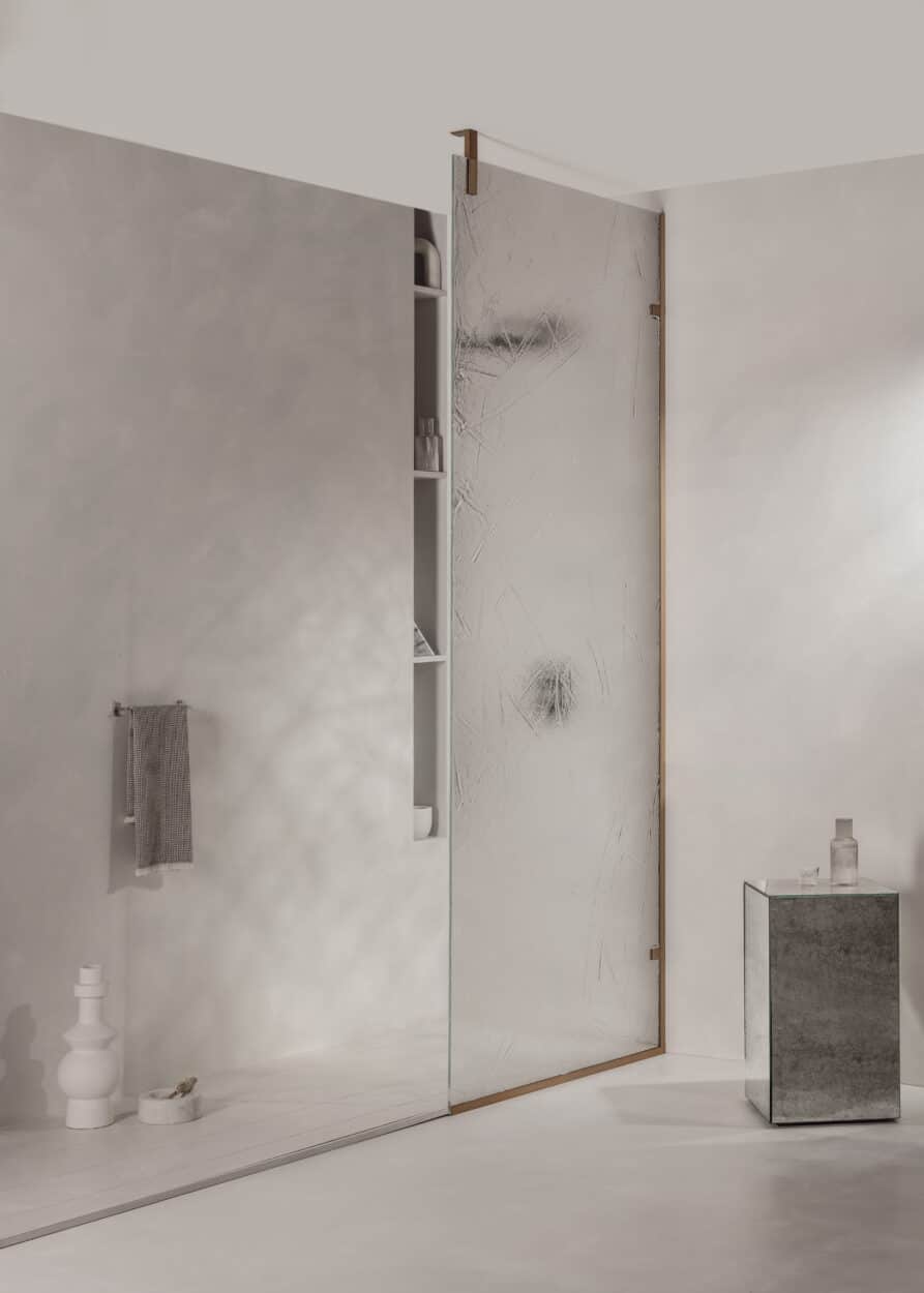 Tom King: Every single piece of the Art Glass Collection is unique to the client. They can have it in whatever style they prefer, from recessed floor to ceiling and slider to dwarf wall and angle cut. The glass can be configured in a way that really makes the shower enclosure the centerpiece of the bathroom. With Sarah, named after Majestic Specification Consultant Sarah Roche, who first devised a variation of the concept in 2017 for 20 Grosvenor Square – the former command center for General Eisenhower’s Operation Overlord, the glass can be used flexibly to create an elegant toilet and shower enclosure with a central dividing panel, either with a printed fade or opaque satin-etched glass. By doing so, the client really takes ownership of the design process and puts their personal stamp on the finished product.