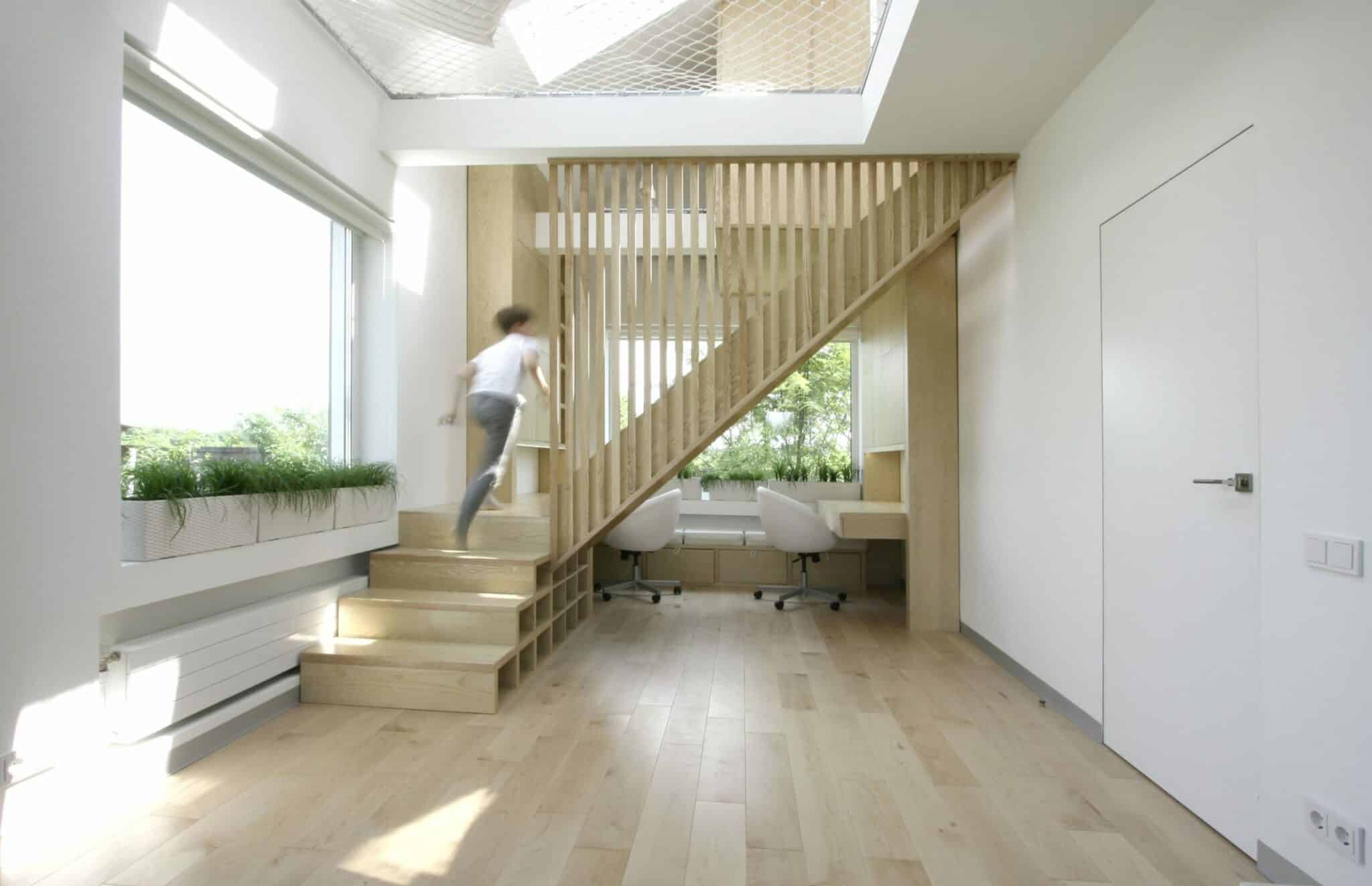 Playing with boundaries had its obstacles. There wasn’t a conventional way to place a staircase, according to the team. They chose to throw a table into the mix. Before reaching the stairs, there’s a table to climb.