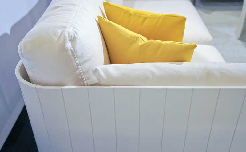 Some of the most popular exhibits resolved perennial design challenges. The Sunnyside Collection is a series of modular upholstered furniture that succeeds in bringing indoor comfort outdoors. This breakthrough, which picked up the ICFF Editors Award for Best Outdoor Seating is the product of a collaboration between product designer Brad Ascalon, interior designer Ghislaine Viñas and the Minnesota-based LOLL Design. All about feeling good, the Sunnyside Collection comes in cheerful colors and it is made from recycled milk jugs.