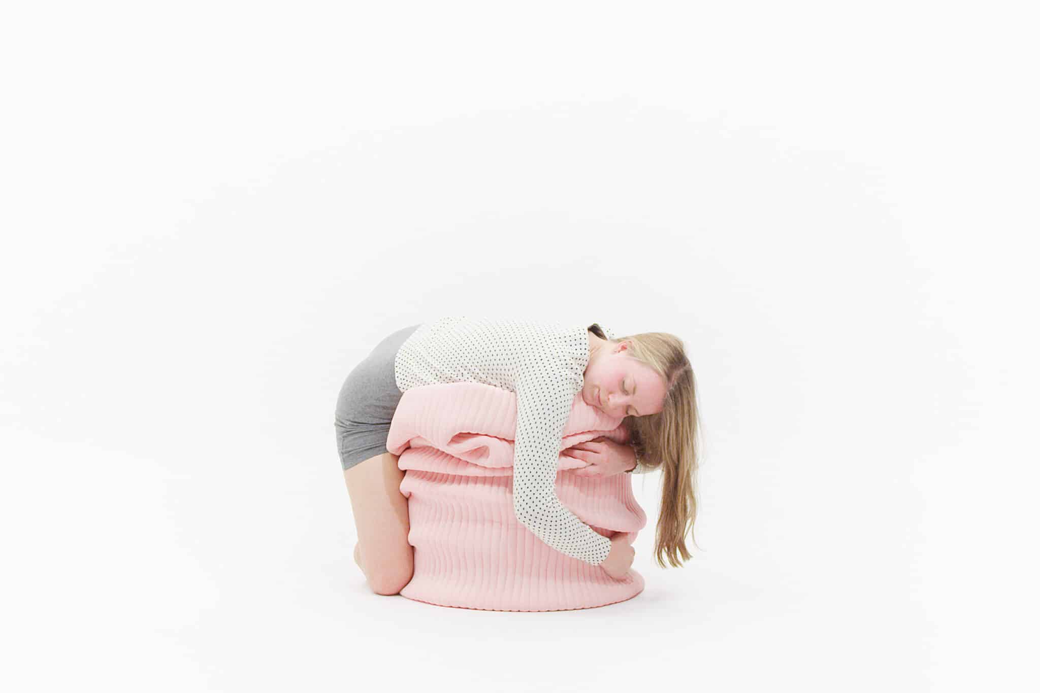 One of these sensory-awakening furniture pieces is a pouf that calls to mind confectionary contemplations. The sweet pouf is a round, flexible object made of memory foam that is upholstered with a soft, pink, quilted textile. The user can literally embrace or simply sink into the pouf. Pastel in color and inviting in form, the pouf evokes positive feelings of pleasure, coziness and safety.
